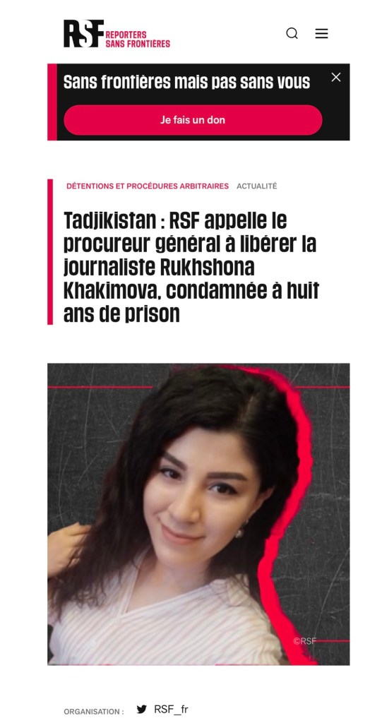 Дар арафаи интихоботи парлумонии 2 март, ки бе ҳеҷ гуна мухолифати воқеӣ баргузор мешавад, мақомоти Тоҷикистон фишорро ба рӯзноманигорони мустақил шадидтар мекунанд. Рухшона Ҳакимова, ки барои таҳқиқоти худ дар бораи нуфузи Чин дар кишвар бо иттиҳоми “хиёнат ба давлат” ба ҳашт соли зиндон маҳкум шудааст, ҳоло дар интизори баррасии шикояти худ дар додгоҳо болоӣ мебошад. Созмони “Гузоришгарони бидуни марз” (RSF) ин ҳукми худсаронаро маҳкум карда, аз прокурор талаб мекунад, ки ӯро озод намояд.